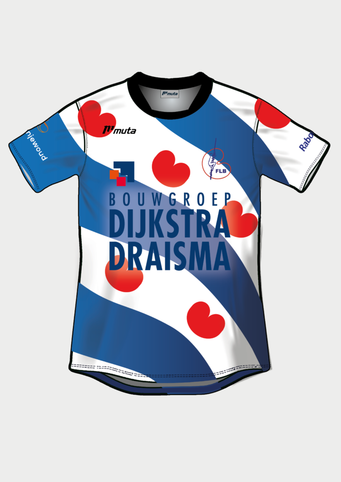 Traditionally the leader of the classification gets a shirt in the Frisian Flag to show that he or she is the best in the category in Friesland. We honoured this tradition and created a new and upgraded design that included the flag. The shirt for the regular sporters has a blue base, due to dirt that comes of the pole when jumping. This blue matches the blue in the leaders shirt and both can be worn with the sporters’ black shorts. The base shirt is personal and consists of the number of the sporter on the back.